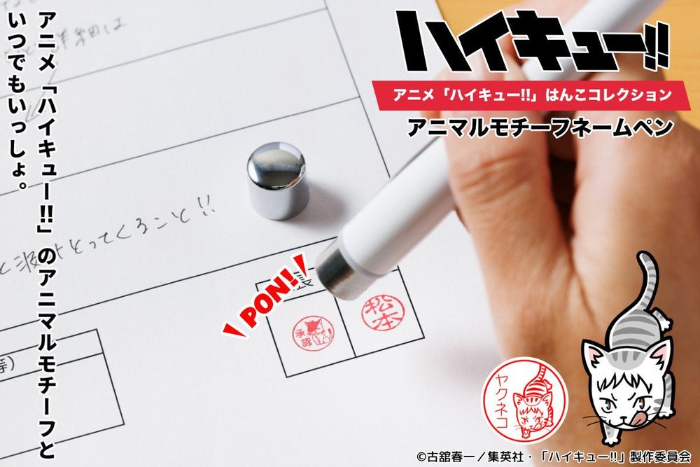 書く・押す・癒される!?アニメ「ハイキュー!!」で人気のアニマルモチーフが、ポン!と押すたびに癒してくれる「アニマルモチーフネームペン」より9種類のアニマルモチーフがあらたに登場