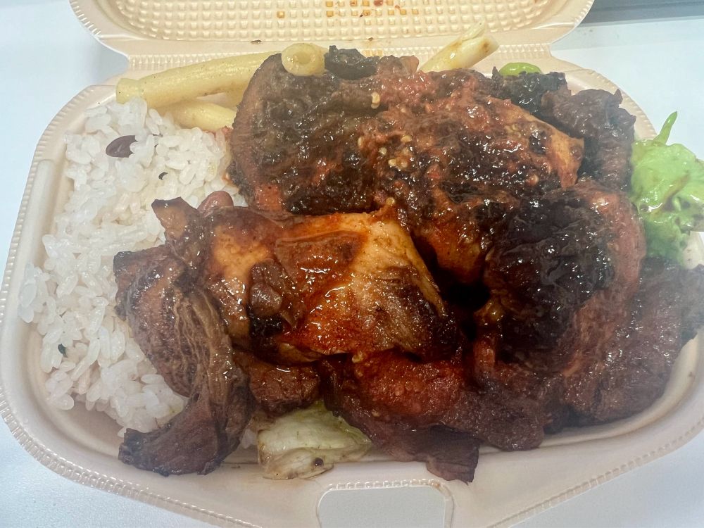 ジャマイカ料理のフードトラックでジャークチキン弁当。