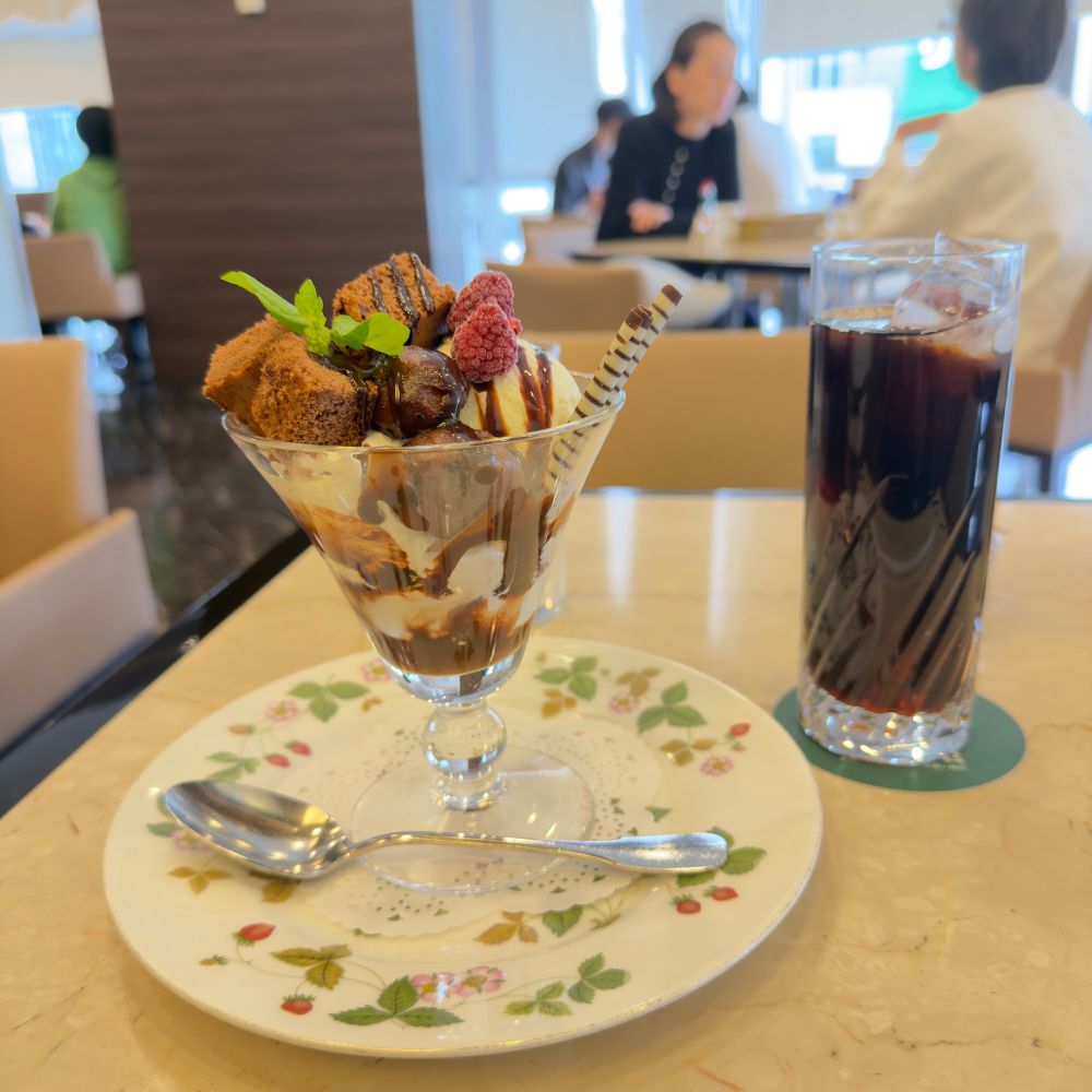 ビスケットやスポンジの食感が楽しく、チェリーのとろりと甘酸っぱさがアクセント。途中まではパフェというよりケーキを食べている感じ。