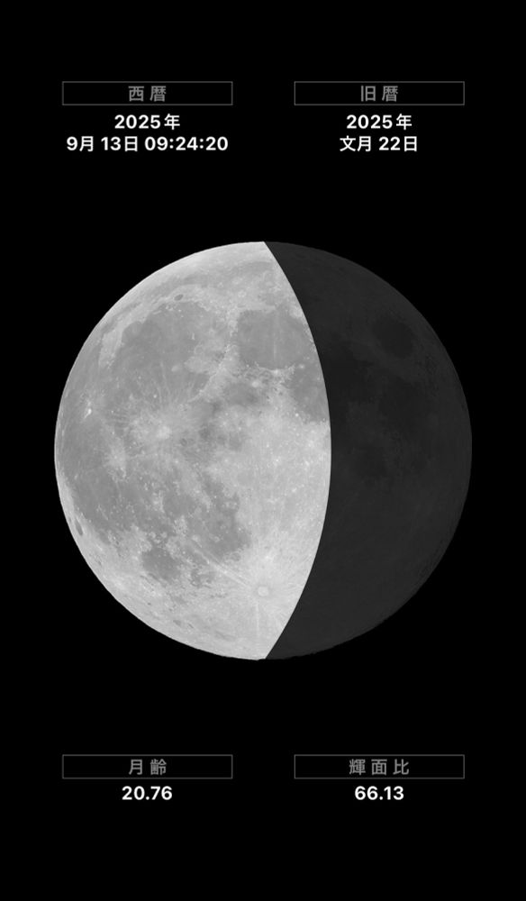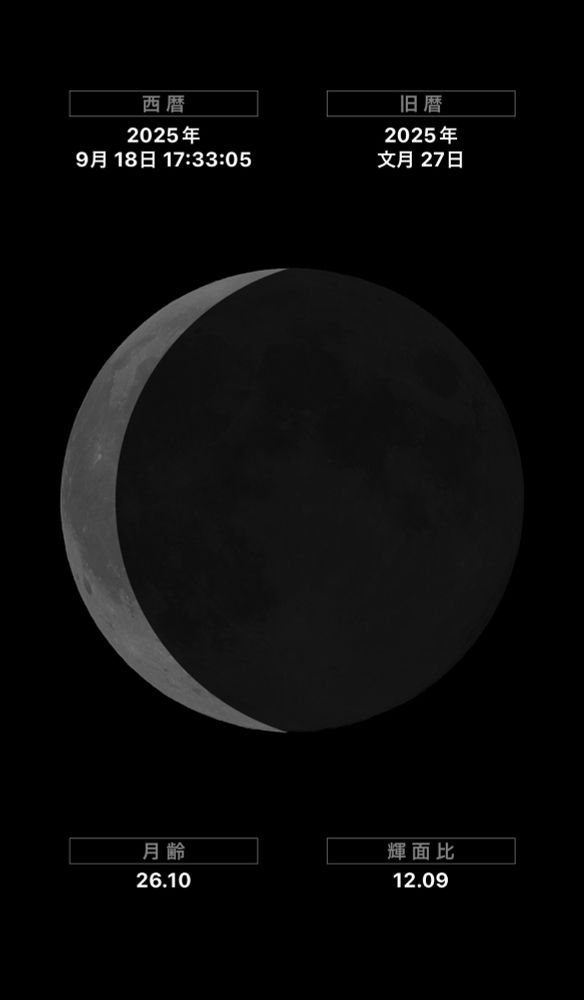 9月18日 月齢 26.10、旧暦2025年文月27日