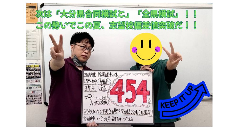 中学3年生は大分県合同模試お疲れさまでした!次は全県模試、期末テストと大切なテストが続きますが、志望校合格目指して目の前のテストを1つ1つ乗り越えよう!