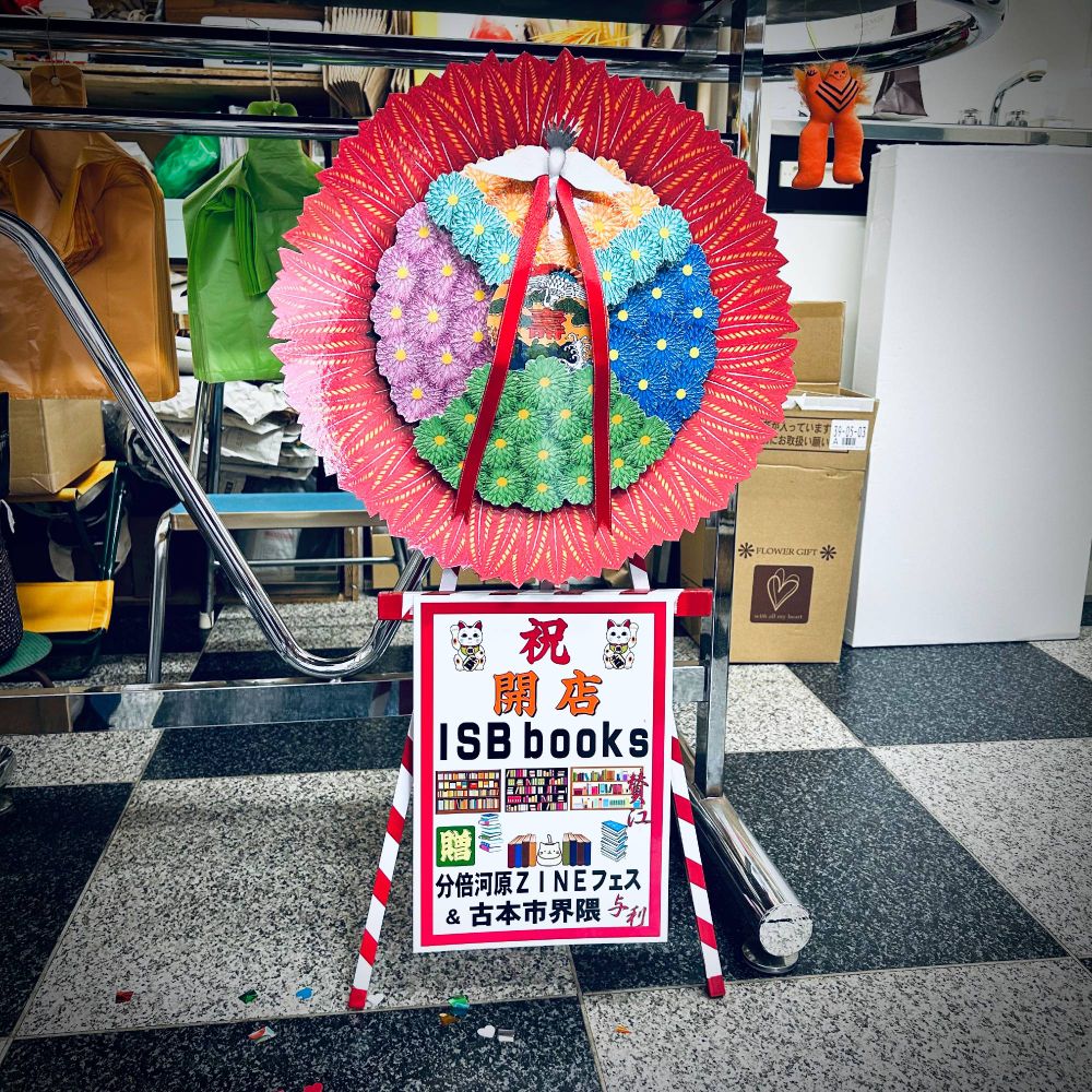 分倍河原ZINEフェス&一箱古本市に出店いただいているISBbooksさんが、阿佐ヶ谷駅と高円寺駅の間に実店舗を開店されたので、開店日である本日、伺いました。出店者の有志の皆さまにご協力いただいてお送りしたミニ花輪も店内に。改めて開店おめでとうございます!有志の皆さまもありがとうございます。