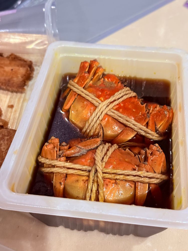 今天下雨而且不饿,晚上就不想出去吃晚餐了。下午的时候在酒店边上商城里的超市买了醉蟹和捞汁罗氏虾。晚上就在房间里一边品尝美食一边赏窗外的万家灯火😚🍻。适宜😌