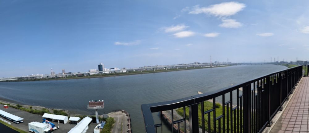 本日10/13午後の荒川放水路。荒川ロックゲート上のテラス(6階相当)から。