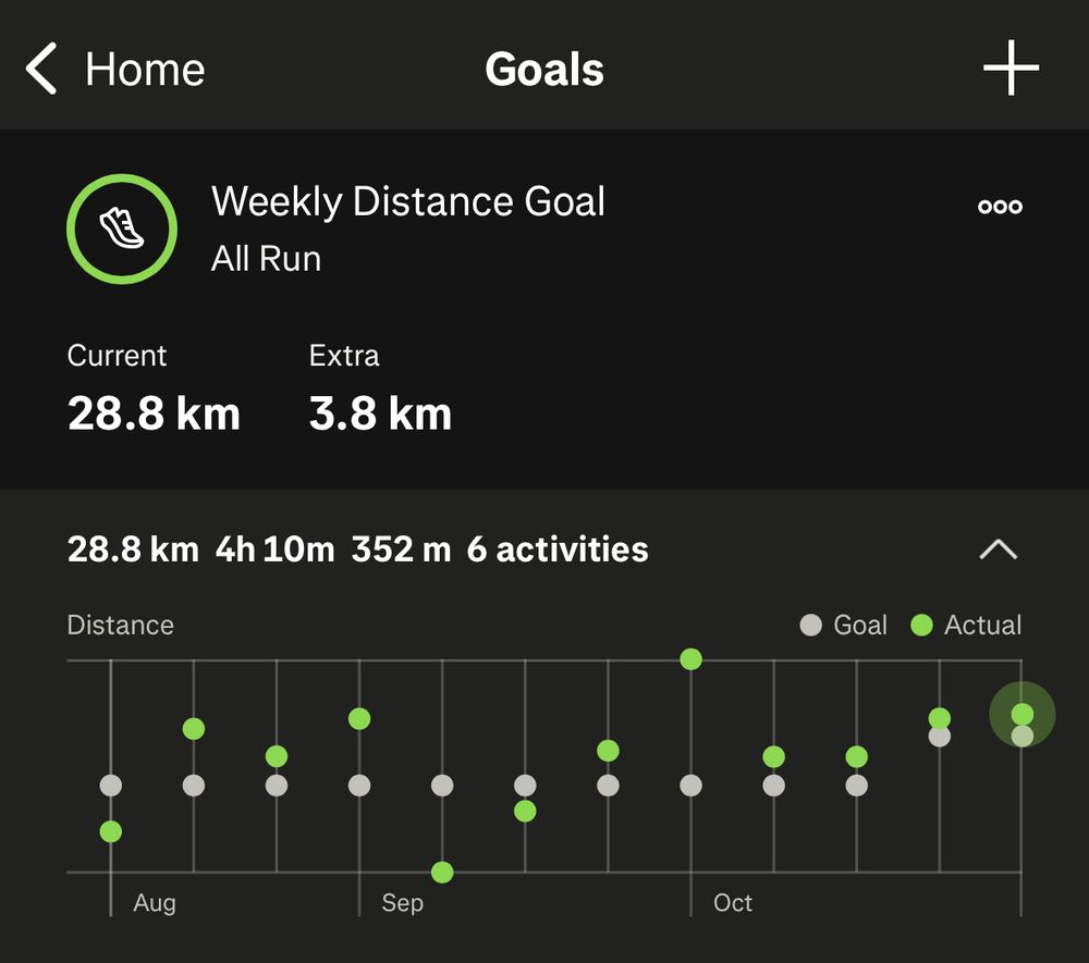 달리기 주간 총 거리 조금씩 늘려가는 중- 11월 중순부턴 30km/week 목표로 바꿀수 있을것 같다.