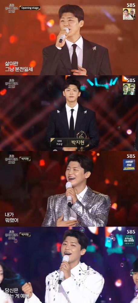 박지현이 ‘트롯뮤직어워즈 2025’ 무대에서 대세 아티스트임을 다시 한 번 확인시켰다. SBS ‘트롯뮤직어워즈 2025’에 등장한 박지현은 오프닝부터 관객의 시선을 사로잡았다. 장민호, 송가인, 김희재, 안성훈, 손태진, 전유진과 함께 나훈아의 ‘삶’을 선보였고, 부드럽고 감미로운 목소리로 무대의 첫 분위기를 끌어올렸다. 관객 속에서 박지현의 존재감은 더욱 빛을 발했다. 무대 후 10대 가수상 수상자가 호명되자 박지현이 주인공임이 알려졌고, 현장은 박지현을 향한 뜨거운 환호로 가득 찼다. 박지현은 환한 미소로 관객에 화답하며 무대 위 에너지를 높였다. 수상 직후 ‘우리는 된다니까’ 무대로 또 한 번 무대 분위기를 달궜다. “박지현, ‘트롯뮤직어워즈 2025’ 주인공→10대 가수상과 무대의 환호” / SBS ‘우리는 된다니까’ 무대에서 박지현은 자신감 있는 가창력과 무대 매너를 자랑했다. 파워풀하면서도 섬세한 보컬은 트롯 대세로서의 아우라를 뚜렷하게 드러냈다. 이어진 퍼포먼스 시간엔 의상을 화이트 슈트로 환복한 뒤, ‘그대가 웃으면 좋아’ 무대까지 이어가 현장 열기를 지속했다. 박지현의 달달한 음색은 노래와 함께 팬들의 마음을 붙잡았다. 박지현의 바쁜 활동은 트롯계의 주목을 한 몸에 받고 있다. 박지현은 일산 킨텍스 제1전시장에서 열린 ‘트롯뮤직어워즈 2025’에 참석하며 인기를 알렸고, 10대 가수상 수상으로 그 위상을 다시 한 번 증명했다. 최근 신곡 ‘녹아 버려요’도 발표하며 무대와 방송을 넘나드는 적극적인 행보를 이어가고 있다. 팬들과의 소통에 적극적인 박지현은 앞으로 SBS ‘한탕 프로젝트-마이 턴’을 통해서도 새로운 모습을 선보일 계획이다. 이날 ‘트롯뮤직어워즈 2025’에서 박지현은 여러 무대를 오가며 트롯 가수로서 다양한 매력을 아낌없이 발산해 트롯 팬들에게 강렬한 인상을 남겼다. SBS ‘트롯뮤직어워즈 2025’는 오전 11시 5분부터 방송됐고, 박지현은 시상식과 무대를 통해서 존재감을 확실히 각인시켰다.