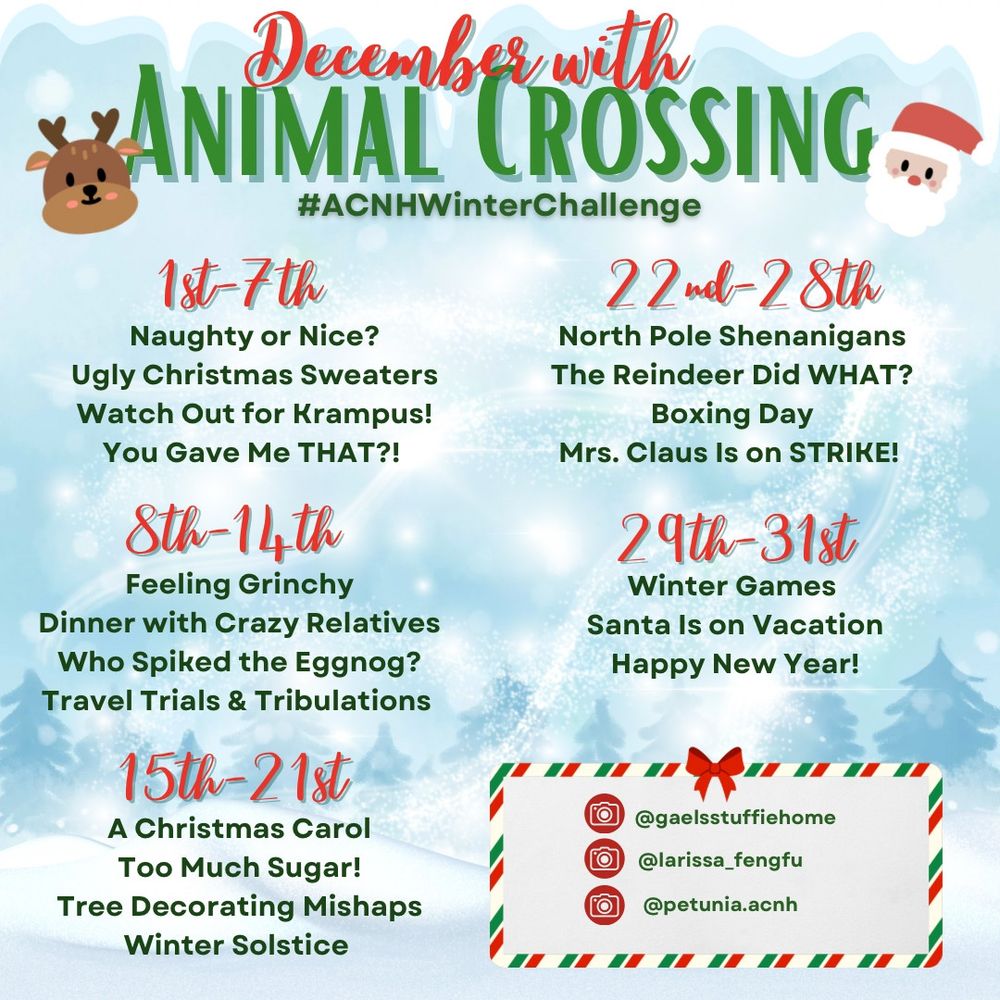 Begins tomorrow! Who else is going to play along on BlueSky with the #ACNHWinterChallenge hashtag? 🎅🎄