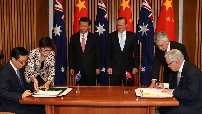 Man who in 2014 hosted Chinese President Xi Jinping in the Australian Parliament & signed a free-trade agreement with communist China complains about other man's visit to communist China. #auspol