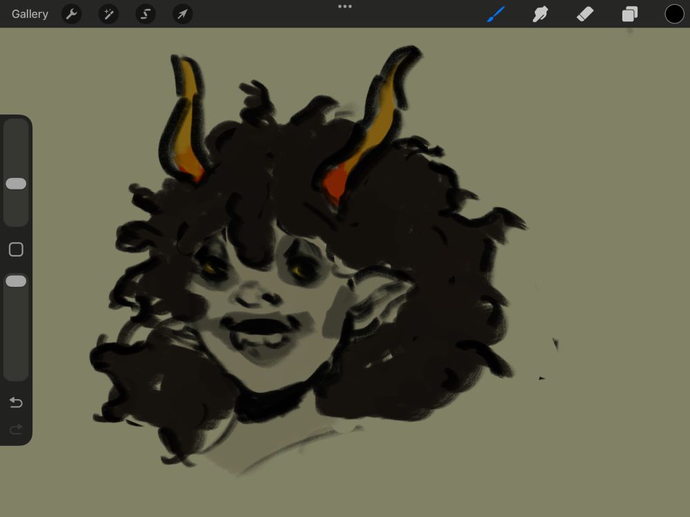 I love Gamzee but Karkat is my boy- though i love how you drew the ruffled bangs and the horns so nicely here, the makeup is drawn so nicely in your style and the vibrant style matches the trolls design in such a sweet way!