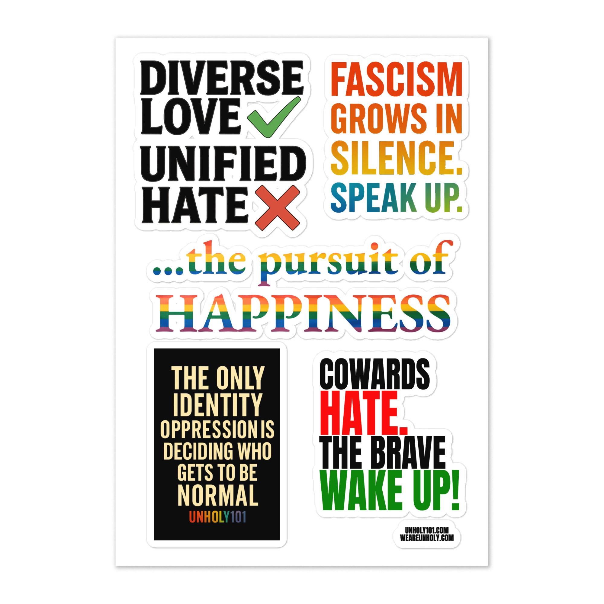 Activist Sticker Sheet – LGBTQ+, Anti-Fascist, Pro-Love, Minimalist Pride Stickers – Unholy101 Pack etsy.me/4m28J29 i.etsystatic.com/59745756/r/i...