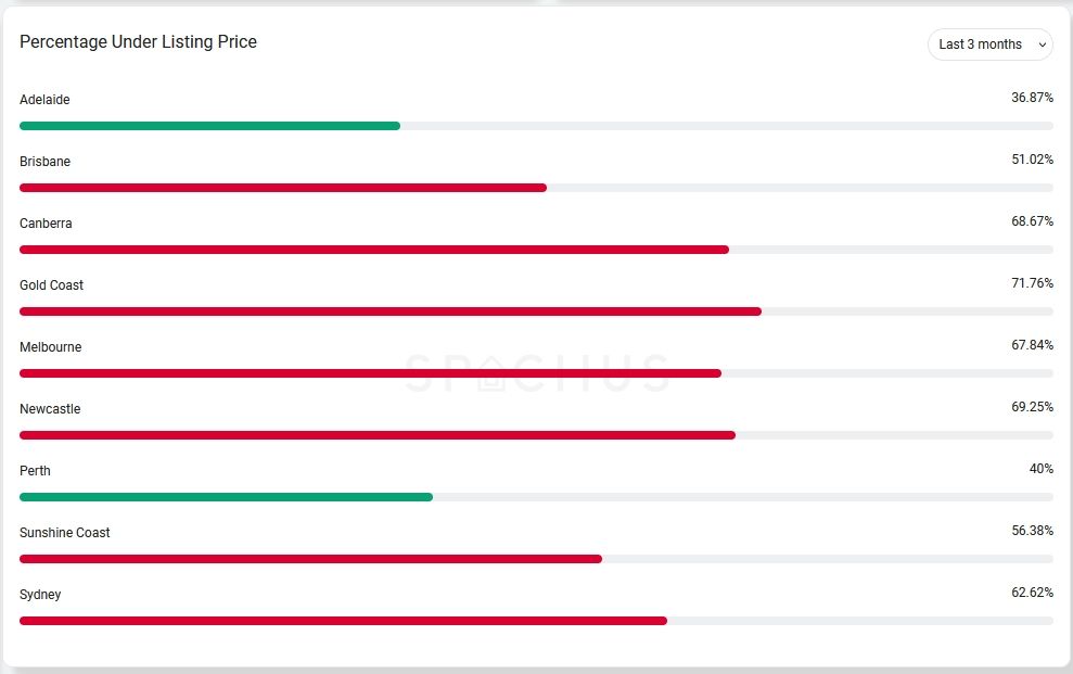 Main cities with property selling under listing price in the last 3 months: