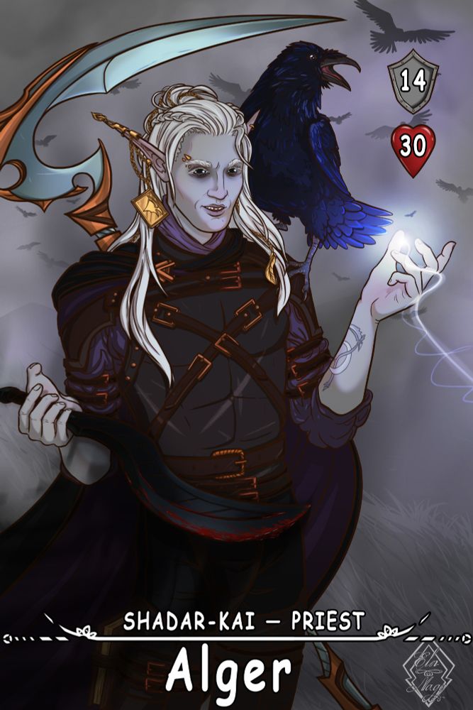 Alger is the hero of my DnD teammate. Shadar-kai, priest of the goddess Raven Queen.